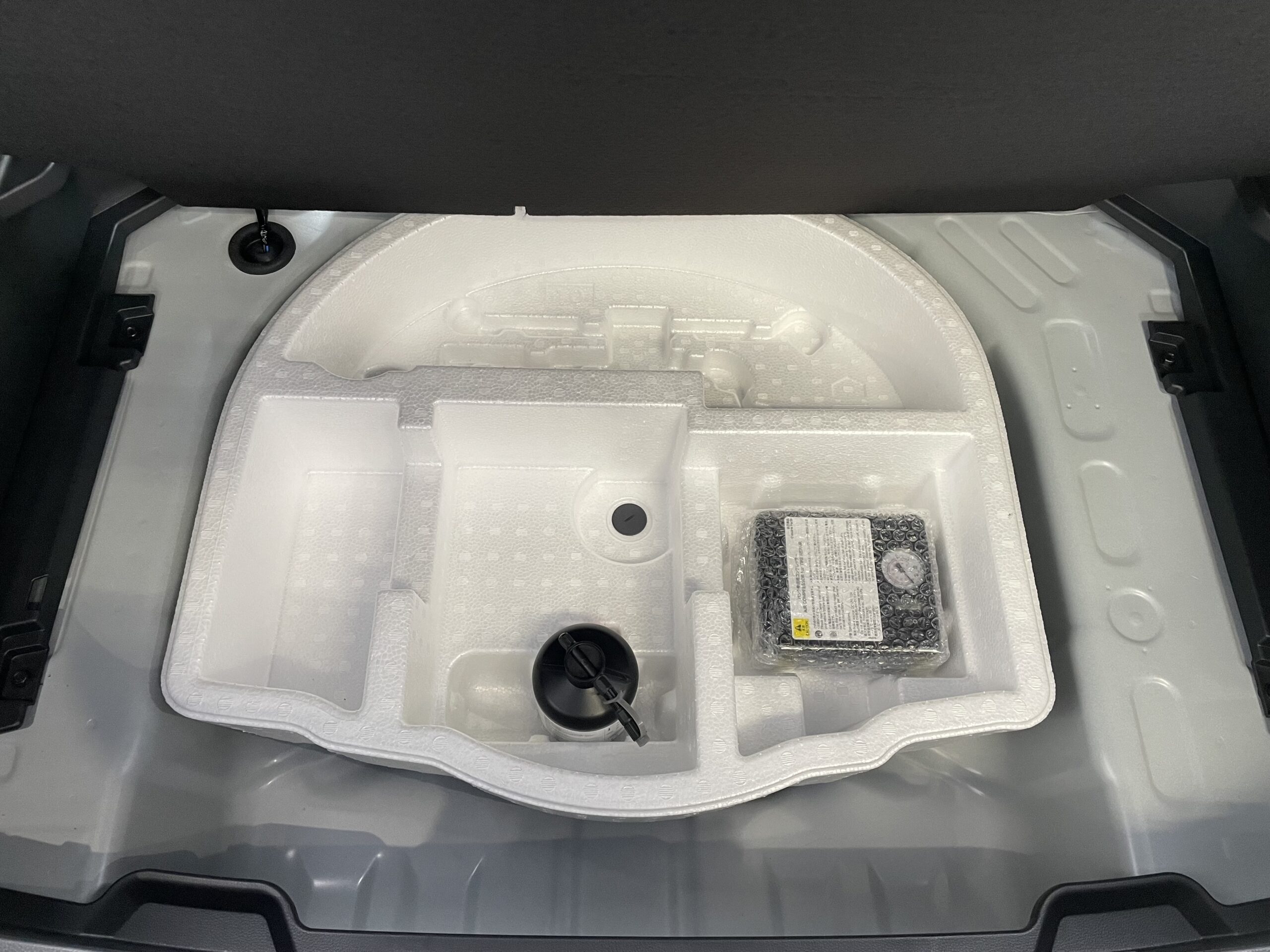 荷室下部にパンク修理キットが収納されています。